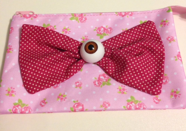 Mini wallet 8 x 5 inches handmade bow and eyeball attached to wallet