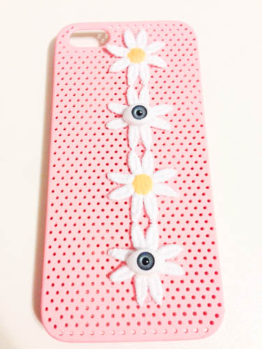 This is an iPhone 5 cover made onto a plastic case. Attached cute little eyeballs and daisies!